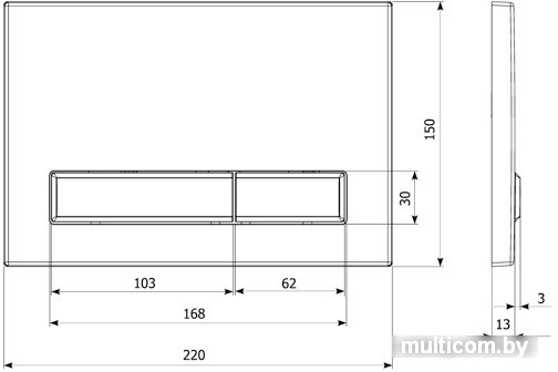 для унитаза, управление механическое, смыв двойной, скрытый монтаж, 220x150 мм, цвет: хром