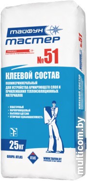 | Информация | Клеевой состав «Тайфун Мастер» №51 предназначен для устройства армированного слоя в системе тепловой изоляции наружных ограждающих конструкций зданий и сооружений «Тайфун».При необходимости применяется для наклеивания теплоизоляционных плит. |