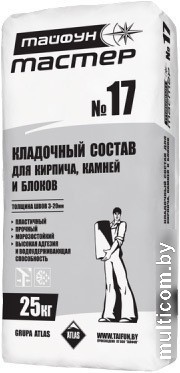 | Информация | Кладочный состав «Тайфун Мастер» №17 применяется для кирпичной и каменной кладки стен и перегородок из кирпича, природных и искусственных камней правильной и неправильной формы. Также применяется для заполнения выбоин, сколов и трещин в кладке. |
