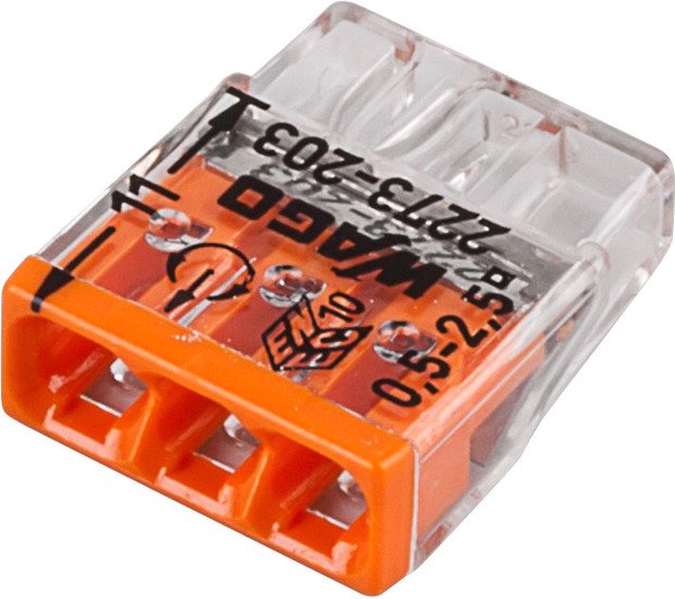 | Информация | ? Клеммы подходят для соединения одножильных/многожильных медных проводников (до 3-го класса гибкости). ? Сечение соединяемых одножильных проводов 0.5-2.5 мм?. ? Используется плоско-пружинный зажим для соединения проводов. |