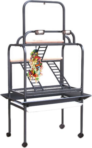| Информация | Стенд металлический с игровой площадкой для выгула средних и крупных птиц.Теперь ваша птица может вместе с вами завтракать или просто находиться рядом в любой удобный момент, подставка на колесах поможет без труда передвинуть конструкцию в нужное место. Съемный поддон, лесенки, жерди и две кормушки в комплекте.Игрушки в комплект не входят, Вы можете украсить стенд развивающими игрушками по вашему усмотрению и с учетом пристрастий вашего питомца.Металлический фартук по периметру – предотвращает разбрасывание остатков еды.Съемный поддон, облегчает уборку за птицей. |