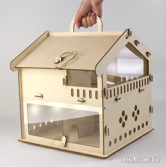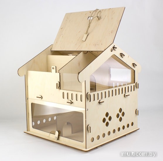 | Информация | Из деталей собирается дом для хомячка и в конструкции предусмотрены:смотровые окошки;зона без окошка (по типу норки);безопасная лестница;удобная ручка для переноса;древесина пропитана водоотталкивающим лаком для уборки.Этот большой дом станет удобным и практичным местом для наблюдения за жизнью любимого хомячка |