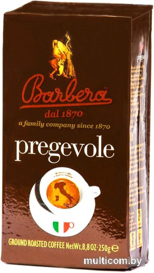 Информация | Молотый кофе BARBERA Pregevole состоит из смеси высококачественных размолотых кофейных зерен, бережно собранных и тщательно отобранных под чутким контролем представителей компании в местах произрастания — плантациях кофе в Бразилии, стран Центральной Америки и Индонезии. Кофе с характерным ароматом, сильным, насыщенным, цельным вкусом, оставляющий за собой длительное и приятное послевкусие горького шоколада и ноток южных фруктов. При приготовлении в Espresso аппаратах дает густую кремообразную пенку. Подходит для любого типа приготовления ароматного напитка в кофейнике, турке, во френч-прессе и гейзерных кофеварках. |