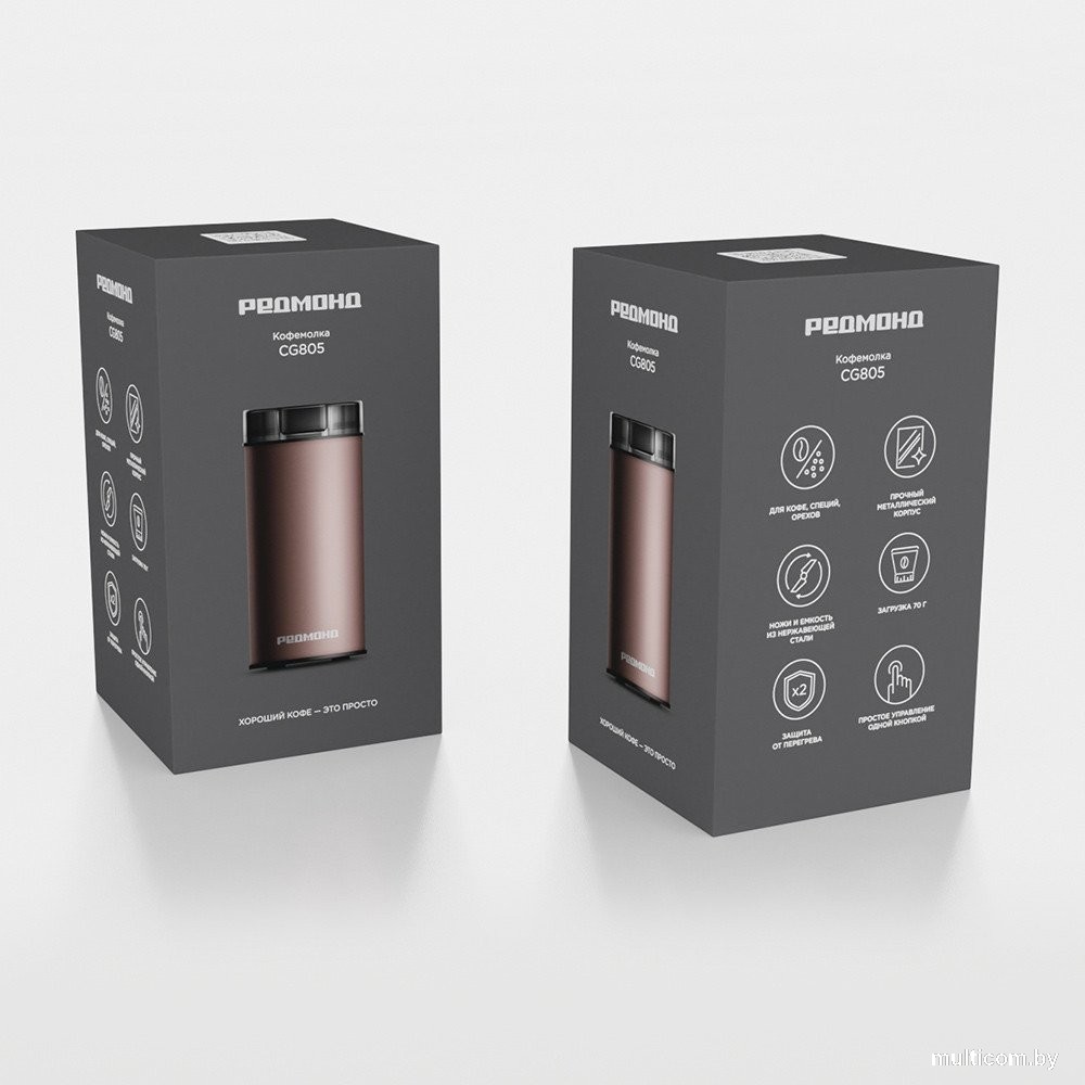 | Информация | - Кофемолка РЕДМОНД CG805 — современный многофункциональный прибор в стильном металлическом корпусе для измельчения кофейных зерен, специй, орехов. За одну загрузку можно измельчить 70 г продукта. Ножи и емкость из нержавеющей стали устойчивы к коррозии и не деформируются при частом использовании прибора. В целях безопасности при критической нагрузке устройство автоматически отключится. - Для кофе, специй, орехов Теперь вы сможете перемолоть не только кофейные зерна. CG805 подходит для измельчения любых пряностей, мускатного ореха, горошков черного перца, семян льна и кунжута. - Прочный корпус Устойчив к мелким царапинам, падениям и бытовым повреждениям. Увесистый металлический корпус будет прочно стоять на столе: достаточно слегка придерживать его рукой в процессе помола. - Ножи и емкость из стали Ножи и емкость кофемолки выполнены из нержавеющей стали: она не впитывает запахи и не влияет на вкус молотого кофе. Лезвия из прочного материала долго прослужат даже без дополнительной заточки. - Загрузка 70 г Перемалывайте зерна ежедневно, чтобы свежий кофе не окислился и не испортился. Емкости 70 г будет достаточно, чтобы подготовить молотый кофе на 5–7 чашек напитка. - Защита от перегрева Кофемолка оснащена системой автоматического отключения при перегреве. Защитные механизмы двигателя оберегают устройство от преждевременной поломки. - Простое управление Не нужно долго разбираться в настройках. Запустить процесс помола очень просто: насыпьте продукты в емкость; нажмите на кнопку. |