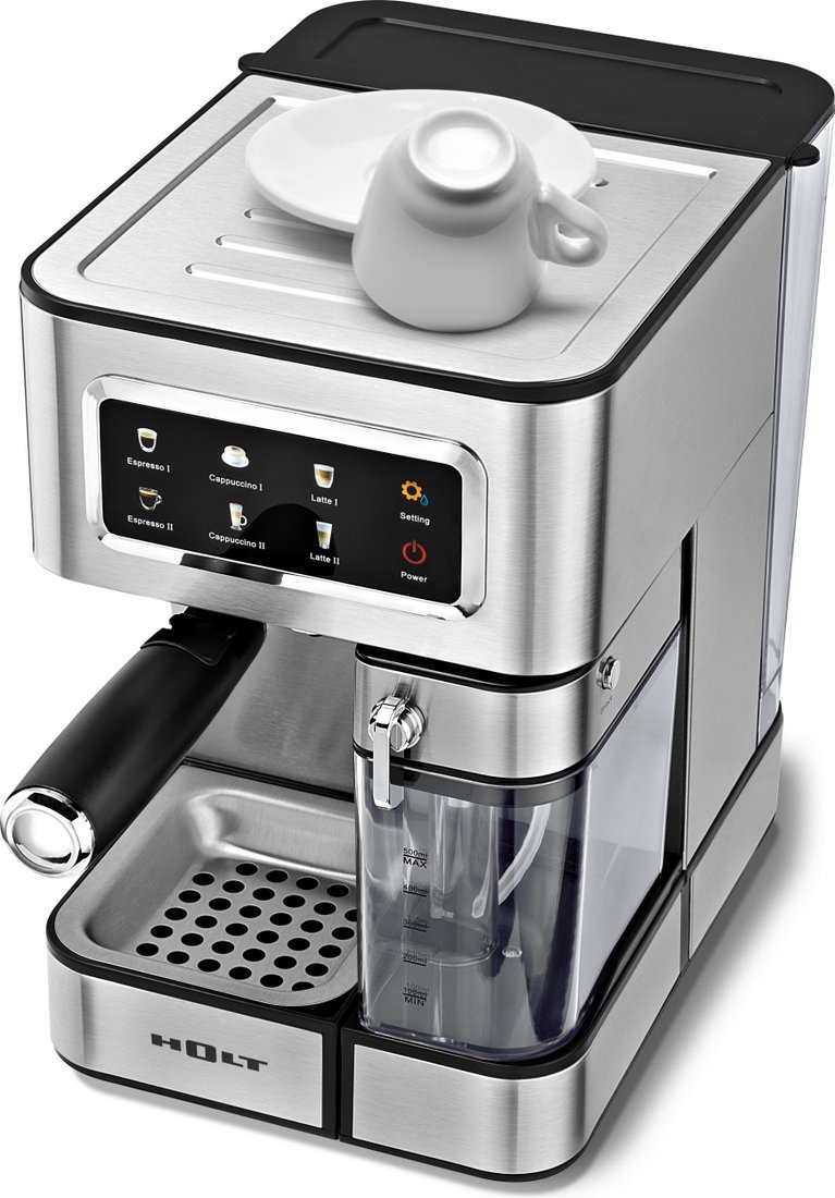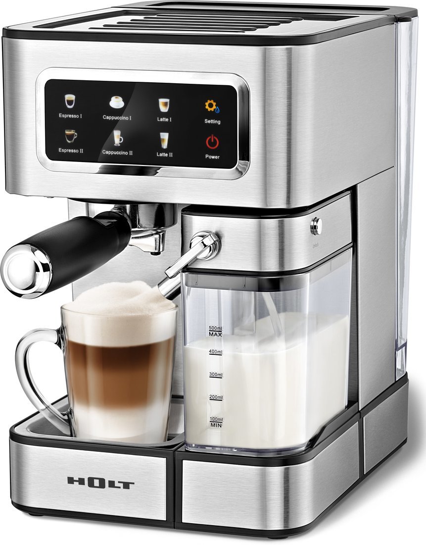 | Информация | - Кофеварка HOLT HT-СM-011 - это современное устройство для приготовления кофе, сочетающее функциональность и стильный дизайн из нержавеющей стали. Благодаря итальянской помпе ULKA с давлением 15 бар и двум нагревательным элементам, кофеварка обеспечивает быстрое и равномерное приготовление насыщенного эспрессо. - Модель оснащена сенсорным дисплеем и шестью автоматическими программами, что позволяет легко выбрать нужный вид напитка. Для кофейных гурманов предусмотрен съемный резервуар для воды объемом 1,8 литра и отдельная емкость для молока на 0,5 литра, что удобно для приготовления различных напитков на основе молока. - Безопасность эксплуатации гарантируется защитой от перегрева и высокого давления, а также функцией самоочистки. На корпусе расположена площадка для подогрева чашек и съемный поддон для сбора капель, что делает использование устройства максимально комфортным. - В комплекте к HOLT HT-СM-011 прилагаются фильтры для приготовления одной или двух порций молотого кофе, а также мерная ложечка-темпер. Нескользящие резиновые ножки обеспечивают устойчивость на поверхности, а продуманные аксессуары делают процесс приготовления кофе простым и приятным. |