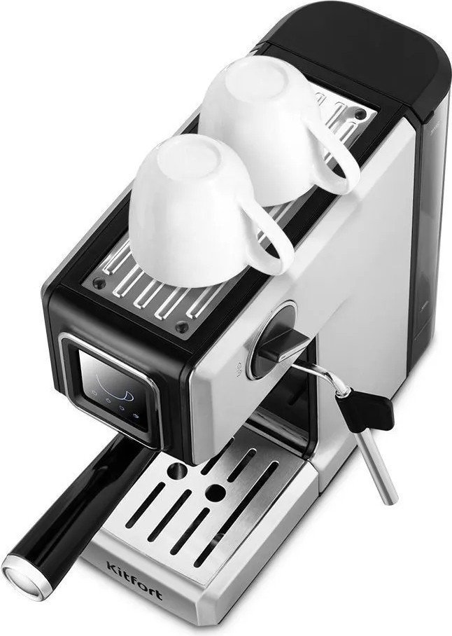 | Информация | - Рожковая кофеварка КТ-7495 позволит вам наслаждаться кофе эспрессо, капучино или латте, а также множеством других вариантов по вашему вкусу. Приготовление одной порции занимает всего 25-30 секунд, а результат порадует вас восхитительным вкусом, ароматом и нежной молочной пенкой. - На панели управления вы сможете выбрать между одной или двойной порцией эспрессо, а также настроить необходимый объём. Кнопка «Вкл/Выкл» отвечает за включение и отключение кофеварки, а кнопка «Пар» активирует нагрев бойлера для подачи пара. - Для создания молочной пенки для капучино предусмотрен капучинатор с паровой трубкой и насадкой панарелло. Просто погрузите трубку в холодное молоко, включите подачу пара и взбейте пенку — это займет совсем немного времени! - Обратите внимание, что у этой модели нет отдельного подогревателя, но она нагревается от тепла, выделяемого во время работы. Это позволяет ставить чашки на платформу, чтобы они оставались тёплыми или быстрее высыхали после мытья. - Резервуар для воды в кофеварке КТ-7495 съёмный, что делает его удобным для наполнения в любом месте. Вы также можете заливать воду, не снимая резервуар с кофеварки. Его ёмкость составляет 1,5 литра. |
