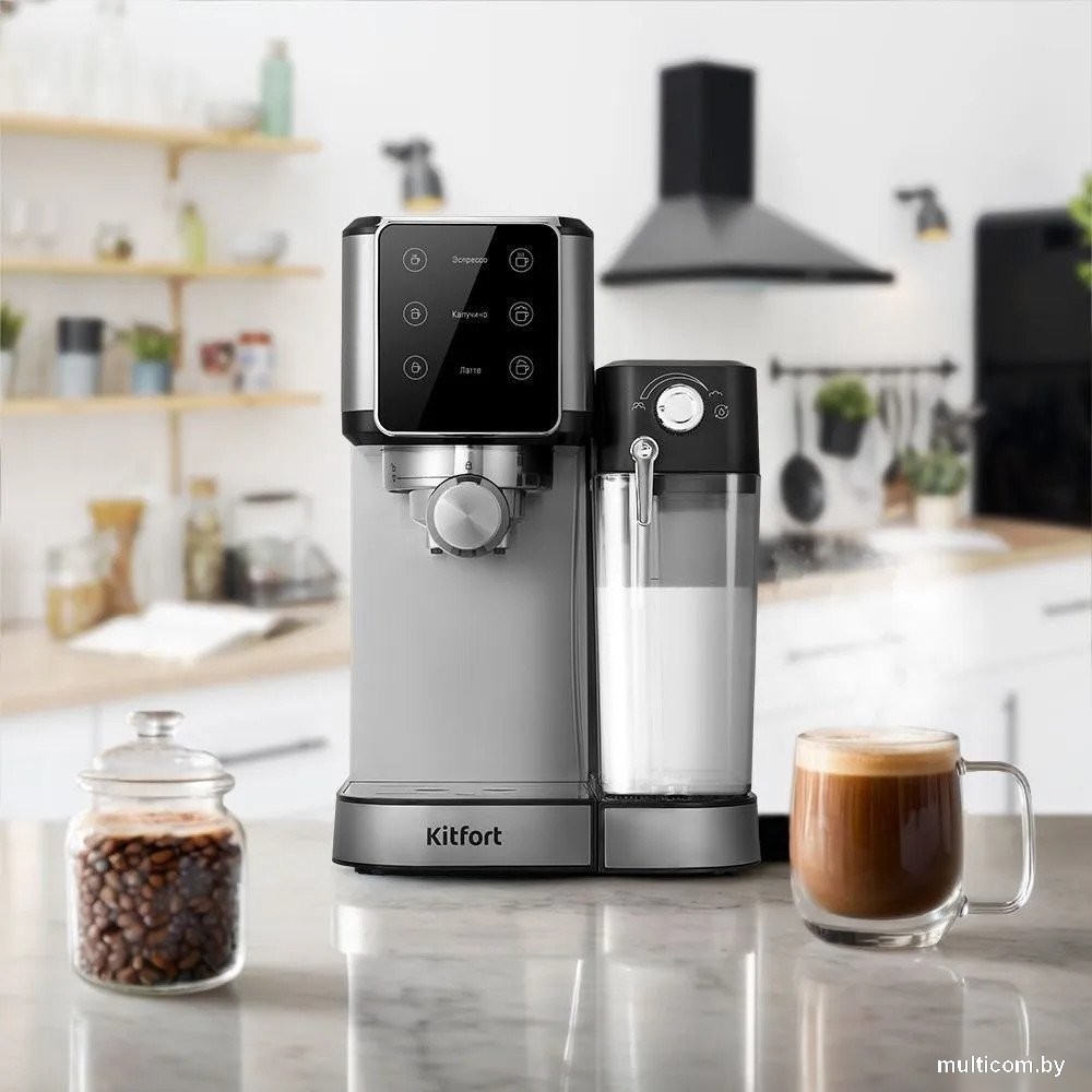 | Информация | - Ваш любимый кофе Кофеварка КТ-7553 позволит вам наслаждаться эспрессо, капучино, латте и множеством других кофейных напитков по вашему вкусу. Главное отличие этой рожковой кофеварки — наличие рожка, который также называют холдером. - Идеальная пенка! Трубка для молока погружается в холодное молоко, что позволяет кофеварке автоматически взбивать молочную пену во время приготовления капучино или латте, подавая её в чашку вместе с эспрессо. - Понятная панель управления С помощью кнопок на панели управления вы можете выбрать желаемый напиток: эспрессо, капучино или латте, а также установить объём — обычный или двойной. - Фильтры-ложечки В комплект входят два фильтра: двойной и одинарный, а также мерная ложечка-темпер для утрамбовки кофе в рожок. Металлические фильтры с лазерным нанесением отверстий не требуют дополнительных расходников. - Поддон для сбора капель Съёмный поддон для капель из нержавеющей стали легко чистится и устанавливается обратно, что делает уход за кофеваркой простым и удобным. - Съёмные резервуары для воды и молока Резервуары для воды и молока легко снимаются и моются. Крышка резервуара для молока снимается, что позволяет заливать молоко, не снимая сам резервуар. Оставшееся молоко можно хранить в холодильнике, не переливая его. - Теплые чашечки! Платформа нагревается от тепла, выделяемого кофемашиной во время работы, и не имеет собственного подогревателя. На ней можно ставить чашки, чтобы они оставались тёплыми или лучше просыхали после мытья. |