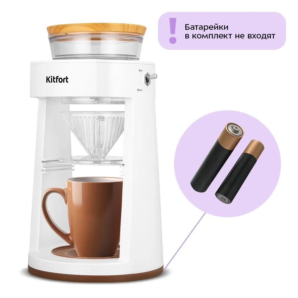 | Информация | -Портативная кофеварка-пуровер Kitfort КТ-7570 — это удобное устройство для приготовления ароматного кофе методом пуровер в любых условиях. Благодаря автоматическому проливу воды через молотый кофе вы получаете насыщенный вкус, сопоставимый с ручным способом, но с минимальными усилиями. Простое управление одной кнопкой позволяет быстро включать и выключать прибор, а индикаторная подсветка поможет контролировать рабочий процесс. -Компактные размеры и резервуар для воды объёмом 350 мл делают устройство идеальным для путешествий, походов или работы. Кофеварка функционирует от батареек типа AA, что позволяет использовать её даже вдали от розетки, а мерная шкала на кофейнике облегчает дозировку воды. -В комплект входят мерная ложка с прищепкой для хранения кофе и один бумажный фильтр. Вы можете использовать как фирменный кофейник, так и любую кружку высотой до 10 см. Кофеварка автоматически выключается через 5 минут работы, что обеспечивает безопасность и экономию заряда батареек. -Устройство выполнено из пластика и отличается лёгким весом, что удобно для переноски. Простой и стильный дизайн, а также возможность быстрой замены фильтра делают Kitfort КТ-7570 отличным выбором для любителей свежего кофе в дороге или на природе.  |