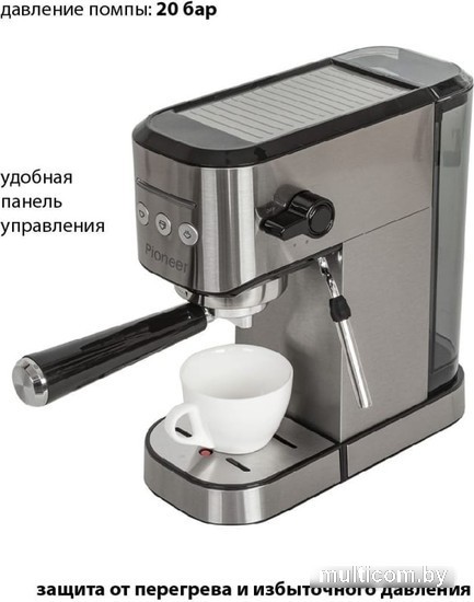 Информация | ? Рожковая кофеварка Pioneer CM108P мощностью 1350 Вт с капучинатором и двойным фильтром из нержавеющей стали сохранит Ваши драгоценные утренние минуты и станет правильным выбором для дома или офиса. Данная модель предусматривает одновременную раздачу на 2 чашки и возможность генерации пара. КЛЮЧЕВЫЕ ХАРАКТЕРИСТИКИ: ? Тип: рожковая ? Тип используемого кофе: молотый ? Электронные кнопки управления ? Максимальная мощность: 1350 Вт ОБЛАСТИ ПРИМЕНЕНИЯ: ? Приготовление эспрессо ? Приготовление капучино ? Генерация пара ? Вспенивание молока ОСОБЕННОСТИ И ПРЕИМУЩЕСТВА: ? Стильный дизайн ? Давление помпы: 20 бар ? Объем съемного резервуара для воды: 1 л ? Предохранительный клапан для автоматического сбрасывания давления ? Держатель фильтра из алюминия с двойным фильтром из нержавеющей стали для улучшения качества кофе ? Приготовление кофе на одну чашку, две чашки и генерация пара ? Подогрев чашек ? Защита от перегрева и избыточного давления ? Простота использования ? Легкая очистка ? Удобство хранения |