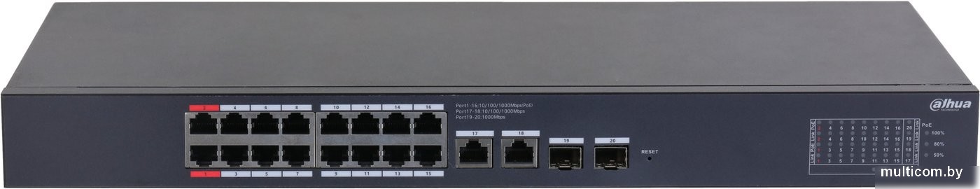 | Характеристики портов PoE | стандарты PoE:IEEE802.3af, IEEE802.3at, Hi-PoE, IEEE802.3bt, бюджет PoE на порт:порт 1-2 до 90 Вт, порт 3-16 до 30 Вт |