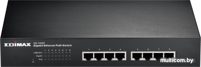 | Информация | GS-1008P является 8-портовым гигабитным коммутатором с 8 PoE портами и создан для использования в малых и средних сетях. Этот компактный коммутатор - наилучший выбор для пользователей с ограниченным рабочим пространством. Он также может быть установлен в 19” стойку с помощью прилагаемого комплекта крепления и под поверхностью стола. |