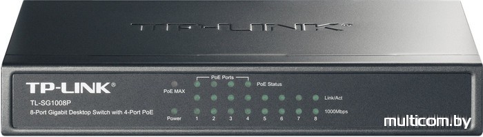 | Информация | 8-портовый настольный гигабитный коммутатор с 4 портами РоЕ. |