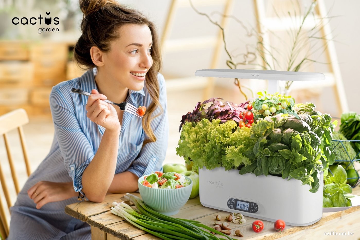 | Информация | Гидропонная установка Cactus Garden CS-SMARTPOT-11 – современное решение для домашнего садоводства. Система для проращивания Cactus Garden CS-SMARTPOT-11 обеспечит оптимальные условия роста растений дома, с использованием простых технологий и удобных современных функций. Компактная гидропонная модель Cactus Garden CS-SMARTPOT-11 с электронной системой контроля уровня воды, светодиодной лампой и таймером предназначена для выращивания самых разнообразных растений без использования почвы. В комплекте есть все необходимое: светодиодный светильник для растений с регулируемой стойкой; резервуар для воды 4.7л; компрессор; аэратор; корзинки для саженцев 11шт; питательные губки, в составе которых есть минералы с запасом веществ на 2-3 месяца; колпачки и заглушки для контроля за процессом роста Гидропонная система Cactus Garden CS-SMARTPOT-11 имеет функцию предупреждения об уровне воды, она подаст сигнал, если в резервуаре недостаточное количество жидкости. Автоматическая циркуляция воды создает особый микроклимат для корневой системы растений. Это очень важно, что у корневой системы есть стабильный поток воды, который оптимизирует доставку питательных веществ и кислорода к корневой системе, делает рост более энергичным и помогает растениям расти в 3 раза быстрее, по сравнению с традиционными способами проращивания. Резервуар объемом 4.7л обеспечивает водой рассаду на срок около 3-4 недель. Для этой системы подойдет набор запасных питательных губок: CS-SPONGE-11 Преимущества гидропонной системы Cactus Garden: Нет необходимости подбирать режимы освещения, их можно установить в меню таймера. Спектр света подходит для любых видов растений. Основное, что необходимо соблюсти – четкие режимы включения и отключения подсветки. Аккуратный, современный внешний вид установки Cactus Garden украсит любое помещение. Можно разместить свой мини-садик на самом видном месте в комнате, и он привлечет заслуженное внимание Ваших гостей. Гидропонные системы Cactus Garden – отличный подарок по любому поводу. Вы не ошибетесь, если подарите такую систему на Новый год маме или бабушке, как раз к моменту начала увлекательного период рассады. Ваш коллега, который выращивает суккуленты (или другие комнатные растения) также будет рад такому интересному подарку. |