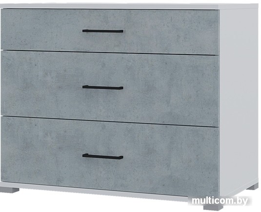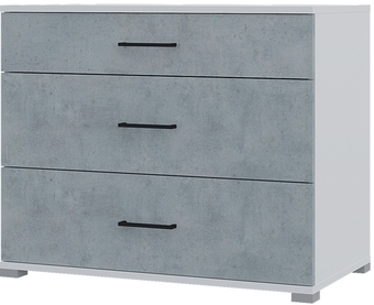 | Информация | Минималистичная модель функционального комода Victor в расцветке белый - бетон отлично впишется в интерьер спальни или жилой комнаты. Комод изготовлен из высококачественной ЛДСП. Система хранения предусматривает три выдвижных ящика на роликовых направляющих. |