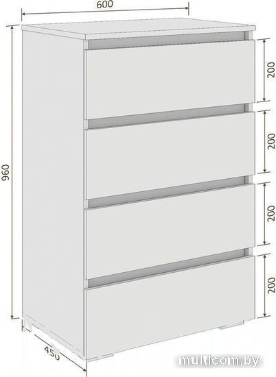 | Информация | Современный комод, глубина которого делает его удобным для использования даже в небольших жилых комнатах (спальне, детской, гостиной или прихожей). 4 вместительных выдвижных ящика прекрасно подойдут для хранения ваших вещей и предметов гардероба. Комоды коллекции Бари производятся в нескольких цветовых решениях, в том числе и с комбинацией 2-х цветов (корпус/планки). |