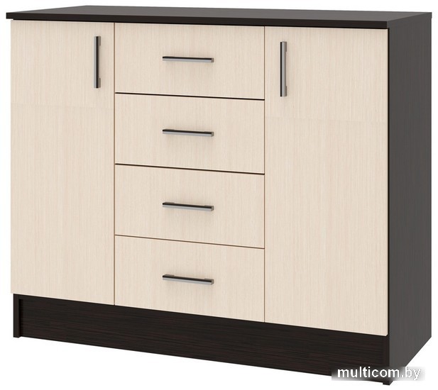 | Информация | Комод МЕБЕЛЬ ЭРА К1000 2Д большой и удобный комод для спальни или гостиной, выполненный из ЛДСП темного и светлого оттенков. Модель оснащена 4 выдвижными ящиками посередине и закрытыми отсеками по бокам. Подробнее: https://comby.by/p153876172-komod-k1000-shimo.html |