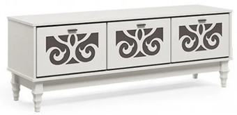| Информация | Роскошная тумба Джела с четырьмя дверями понравится любителям стильных дизайнерских решений, модель привлекает внимание изысканным внешним видом: фасады декорированы фрезеровкой с ультрафиолетовой печатью, а резные ножки тумбы выполнены из массива березы и покрыты белой эмалью. Изделие вместительно и рассчитано на хранение разнообразных предметов, модель можно использовать как прикроватную тумбочку или дополнить ей интерьер гостиной. |
