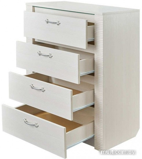 | Информация | Комод Элана несомненно станет украшением вашего интерьера, плавность и изысканность линий и сочетание модных светлых оттенков придает этой коллекции особую нежность и утонченность. Комод из серии спального гарнитура Элана, имеет четыре выдвижных ящика которые имеют большую вместительность и пригодятся для бережного и аккуратного хранения одежды и белья, косметики и всевозможных аксессуаров. Этот красивый и функциональный предмет мебели идеально подходит для любого помещения и станет великолепным дополнением к общей интерьерной композиции в вашем доме, квартире. Современный и стильный дизайн, который поможет правильно организовать любое пространство в Вашей квартире. |