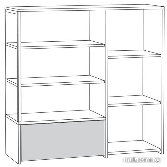| Информация | Отделение с открытыми полками Распашные дверца Выдвижной ящик на направляющих скрытого монтажа с доводчиками Универсальная сборка |