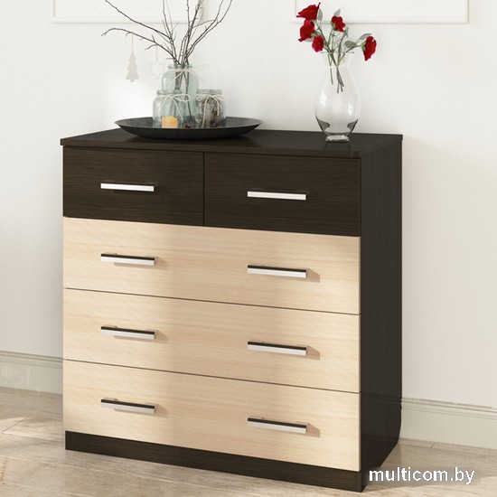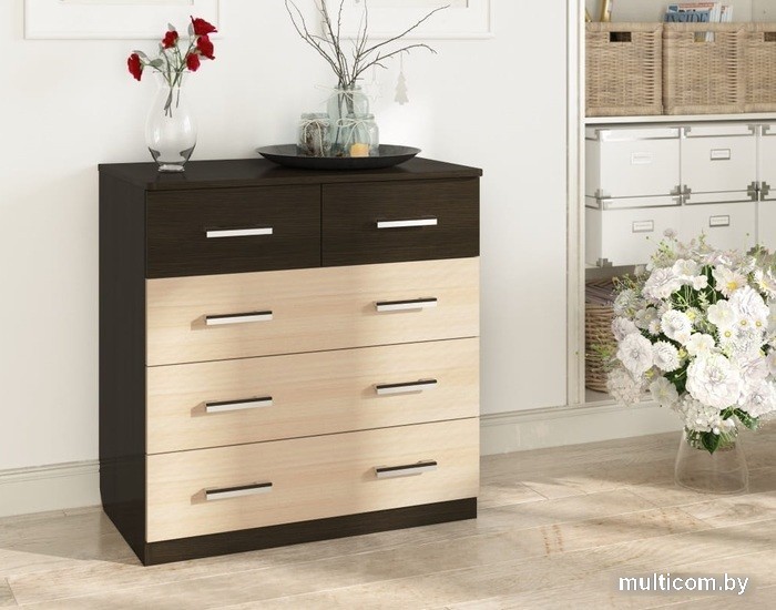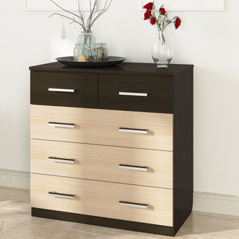 | Информация | Этот почти классический комод с пятью выдвижными ящиками необычен и прекрасен своей комбинацией цветов. Фасады двух верхних узких ящиков у него темные, фасады трех нижних - светлые. На фасаде каждого светлого ящика - две ручки из ПВХ шириной 128 мм. На фасаде каждого темного ящика - по одной ручке. Комод вместительный, и в то же время компактный, эргономичный и надежный, ящики оснащены качественными выдвижными механизмами. И еще одно весомое достоинство - он недорогой! Он удобен для хранения одежды, белья, детских вещей, посуды и прочего. Корпус и фасады комода изготовлены из прочного недорогого материала с отличными функциональными характеристиками. Отсутствует зазор между корпусом комода и полом - под ним не придется убирать пыль. |
