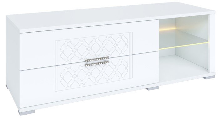 | Информация | Фасады МДФ с фрезеровкой «Орхидея» украшены ручками с кристаллами. Прямоугольные опоры, высотой 20 мм. К открытой стеклянной полке, толщина которой 6 мм, можно дополнительно купить светодиодную подсветку. |