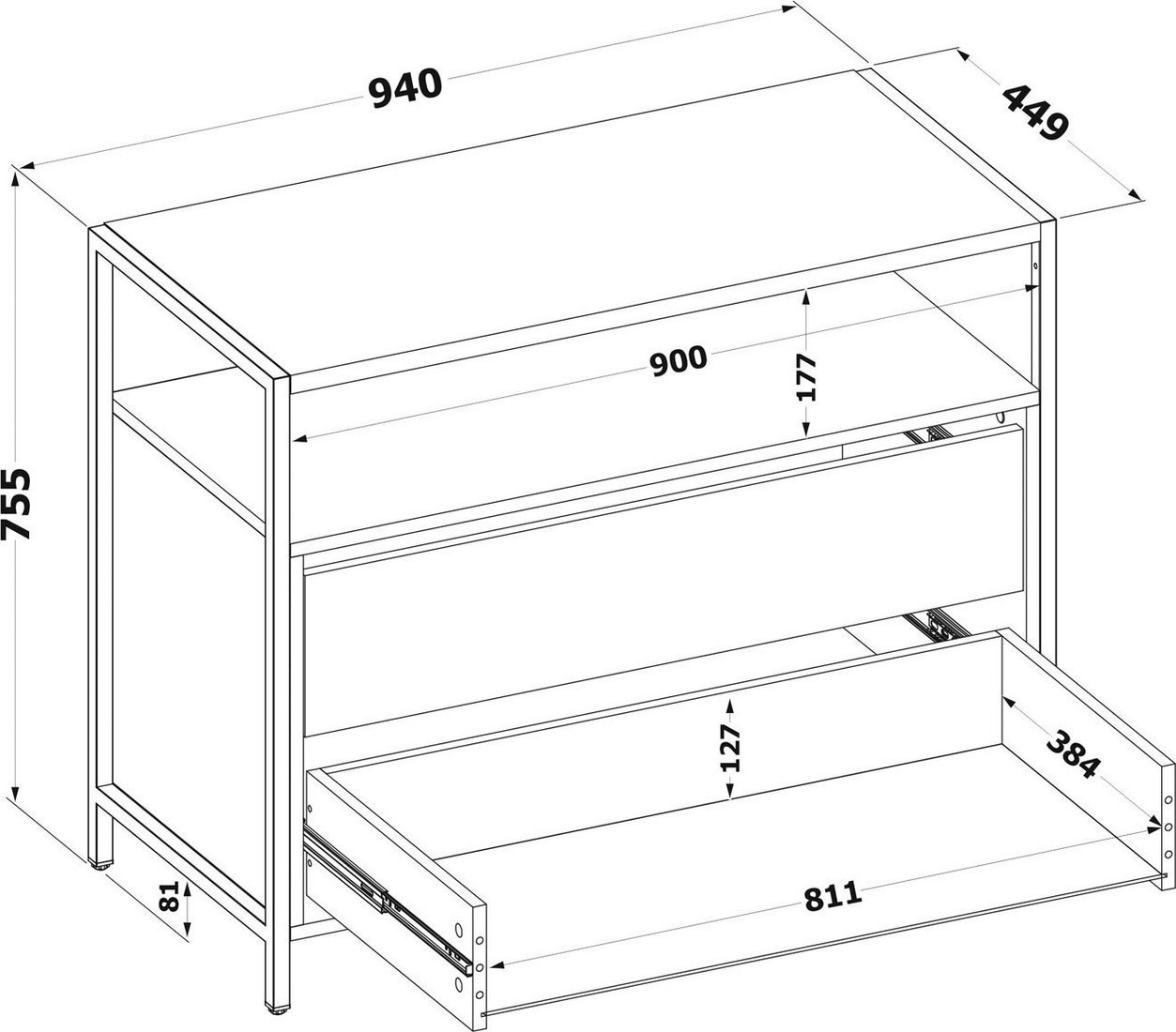 | Информация | - Функциональный комод Т-400 — идеальное решение для организации хранения вещей в вашем доме. Он прекрасно впишется в интерьер гостиной, спальни или прихожей, позволяя максимально эффективно использовать пространство. - Рабочая поверхность шириной 940 мм и глубиной 449 мм предоставляет достаточно места для размещения телевизора и декоративных элементов, даже в компактных помещениях. - Современный стиль лофт подчеркивается металлическим каркасом на регулируемых подпятниках и деталями толщиной 22 мм с противоударной кромкой. Это не только стильно, но и практично! - Открытая ниша под столешницей обеспечивает легкий доступ к предметам первой необходимости, создавая визуально легкий и просторный вид. Два вместительных выдвижных ящика идеально подойдут для хранения личных вещей, одежды и белья. - Внутренние размеры ниши составляют 90?17.7 см, а габариты ящика — 12.7?81.1?38.4 см, что делает комод Т-400 отличным выбором для любого интерьера. |