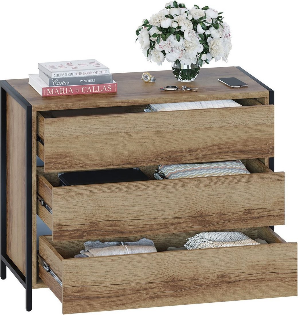| Информация | - Комод Т-401 в стиле лофт — идеальное решение для организации пространства в спальне, гостиной или прихожей. Эта вместительная система хранения сочетает в себе современный дизайн и функциональность, что делает её отличным выбором для любого интерьера. - Эффектный черный металлокаркас на регулируемых подпятниках придаёт комоду устойчивость и стильный вид. Деревянные детали толщиной 22 мм с противоударной кромкой обеспечивают долговечность и защиту от повреждений. Рабочая поверхность шириной 940 мм и глубиной 449 мм идеально подходит для размещения большого телевизора и различных предметов декора, эффективно используя пространство вашей комнаты. - Для хранения документов, белья и личных вещей предусмотрены три вместительных выдвижных ящика. Плавное и бесшумное открывание обеспечивают надежные шариковые направляющие, а стильные вырезы между фасадами вместо привычных ручек добавляют оригинальности. - Внутренние габариты ящика составляют 12.7?81.1?38.4 см, что позволяет удобно организовать ваши вещи. Комод Т-401 станет не только практичным, но и стильным элементом вашего интерьера. |