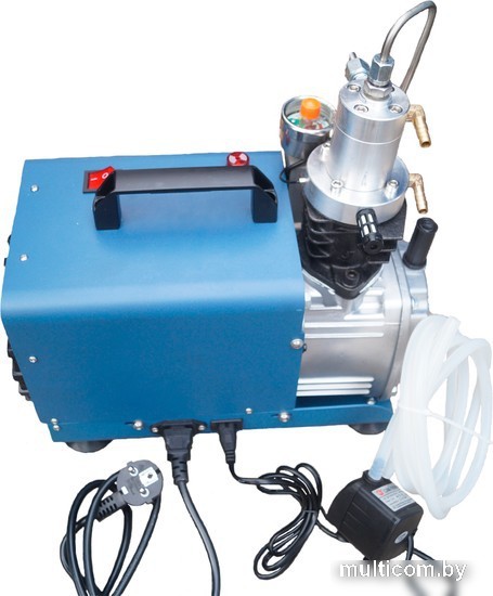 | Информация | Электродвигатель – прибор просто подключается к электросети на 220 В. Жидкостное охлаждение – компрессор активно охлаждается водой. Это исключает опасность перегрева системы даже при больших нагрузках. Компактный – устройство можно перемещать с места на место в руках. При желании компрессор можно положить в багажник легкового авто. Внешний фильтр – на шланг компрессора устанавливается фильтр, который очищает и осушает сжатый воздух. |
