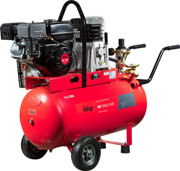| Информация | Преимущества бензинового компрессора FUBAG BP 3600: • Надежный 4-тактный двигатель. • Профессиональный двигатель Fubag обеспечивает высокий ресурс и экономичность. • Высокоэффективная компрессорная головка. • Головка с увеличенным КПД и улучшенным теплоотводом. • Эффективное охлаждение за счет увеличенных ребер охлаждения головки. |