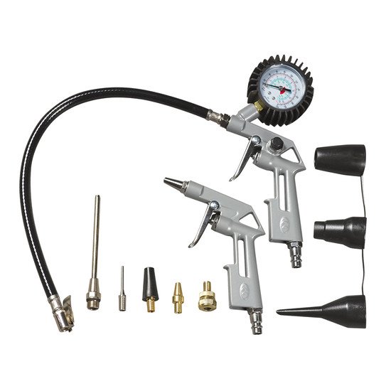 | Комплектация | • Компрессор • Воздушный шланг, 3 м • Пневмопистолет с манометром для накачки • Пневмопистолет для продувки • Удлиненная насадка для продувки • Игла для накачки мячей • Универсальный адаптер для клапанов с внутренним диаметром 6 мм • Универсальный адаптер для клапанов с внутренним диаметром 9 мм • Адаптер для накачки велосипедных шин • Насадки для накачки лодок, матрасов, бассейнов • Переходник (для насадок накачки лодок, матрасов, бассейнов) |
