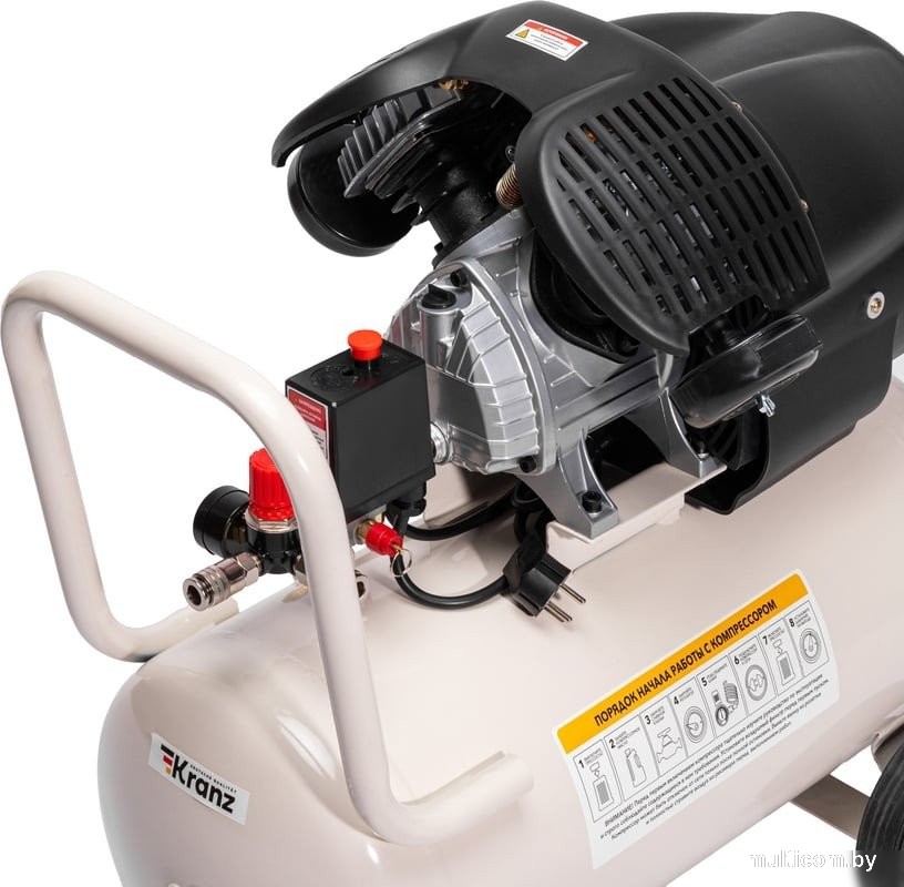 | Информация | Компрессор используется для сжатия атмосферного воздуха и его подачи в бытовое оборудование, аппаратуру и инструменты. Позволяет накачивать шины, осуществлять покраску, чистить тропинки, прочищать систему полива и т.д. Оборудование оснащено поршневым типом пневматического механизма и масляным типом смазки, что обеспечивает высокую производительность и длительный срок службы. Прямой привод упрощает конструкцию и увеличивает надежность. Пневмоэлектрический выключатель автоматически включает или выключает устройство при расходе сжатого воздуха. Сменный воздушный фильтр защищает цилиндро-поршневую группу от абразивного износа. Компрессор имеет восстанавливаемый термопредохранитель. Предусмотрена выносная кнопка для ручного восстановления предохранителя. Для подключения рабочего инструмента есть два быстросъемных штуцера ?". При необходимости к оборудованию можно подключить дополнительный ресивер или штуцер. Контроль давления в ресивере и на выходе осуществляется с помощью двух манометров. Для безопасности установлен механический клапан сброса давления, срабатывающий при превышении максимального давления в ресивере. Пластиковый кожух снижает уровень шума и защищает пользователя от соприкосновения с нагретыми частями оборудования. Для повышения устойчивости компрессор оснащен двумя резиновыми опорами. |