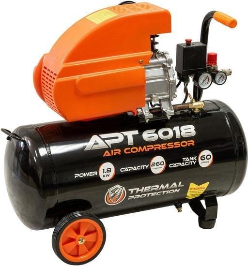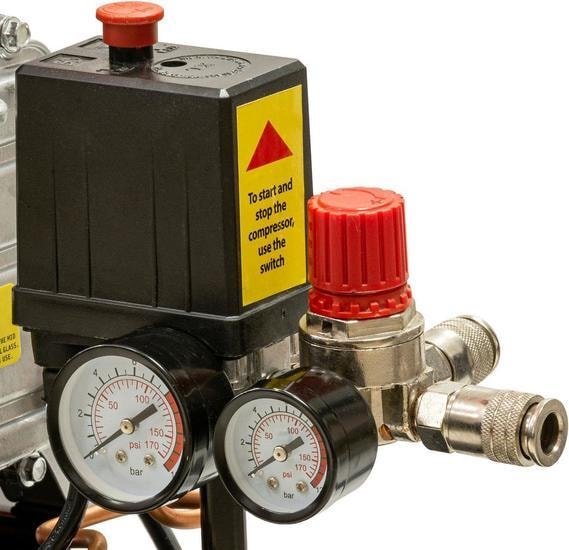 | Информация | Манометр в металлическом корпусе. Воздушная трубка с радиаторным теплоотводом. Болт для слива конденсата из ресивера. Колеса с резиновыми накладками делают транспортировку удобной. |