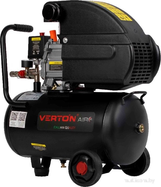 | Информация | - Компрессор Verton Air AC-24/240K 01.5985.12193 предназначен для работы с сжатым воздухом и подходит для сервисов и небольших производств. Он оснащен вместительным ресивером на 24 литра, что снижает интенсивность рабочих циклов. Два манометра обеспечивают контроль давления внутри ресивера и на выходе из него. Рукоятка и транспортировочные колеса облегчают транспортировку. - Однофазный электрический двигатель имеет защитный кожух для дополнительного охлаждения. Компрессорная головка оснащена улучшенными ребрами охлаждения, а сменный воздушный фильтр на входе защищает цилиндро-поршневую группу от износа. - Компрессор также оснащен выключателем давления, восстанавливаемым термопредохранителем, двумя евроразъемами для подключения потребителей, регулируемым давлением на выходе, прорезиненными колесами, защитой от перегрузок и перегрева, медными трубками воздуходува для эффективного отвода тепла, быстрым сливом конденсата и устойчивой поверхностью. - |