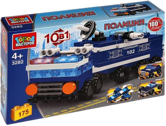| Информация | Конструктор 10 в 1 «Полицейская машина» из серии «Полиция» ТМ «Город мастеров» понравится маленьким защитникам правопорядка. Особенности и комплектация: - 175 деталей - 10 вариантов сборки - совместим с моделями конструкторов мировых брендов - все детали легко и плотно соединяются между собой С помощью этого занимательного конструктора ваш ребёнок может собрать 10 вариантов моделей полицейской техники. Набор вдохновит малыша на новые увлекательные сюжеты для игр и станет гордостью его игрушечной коллекции. |