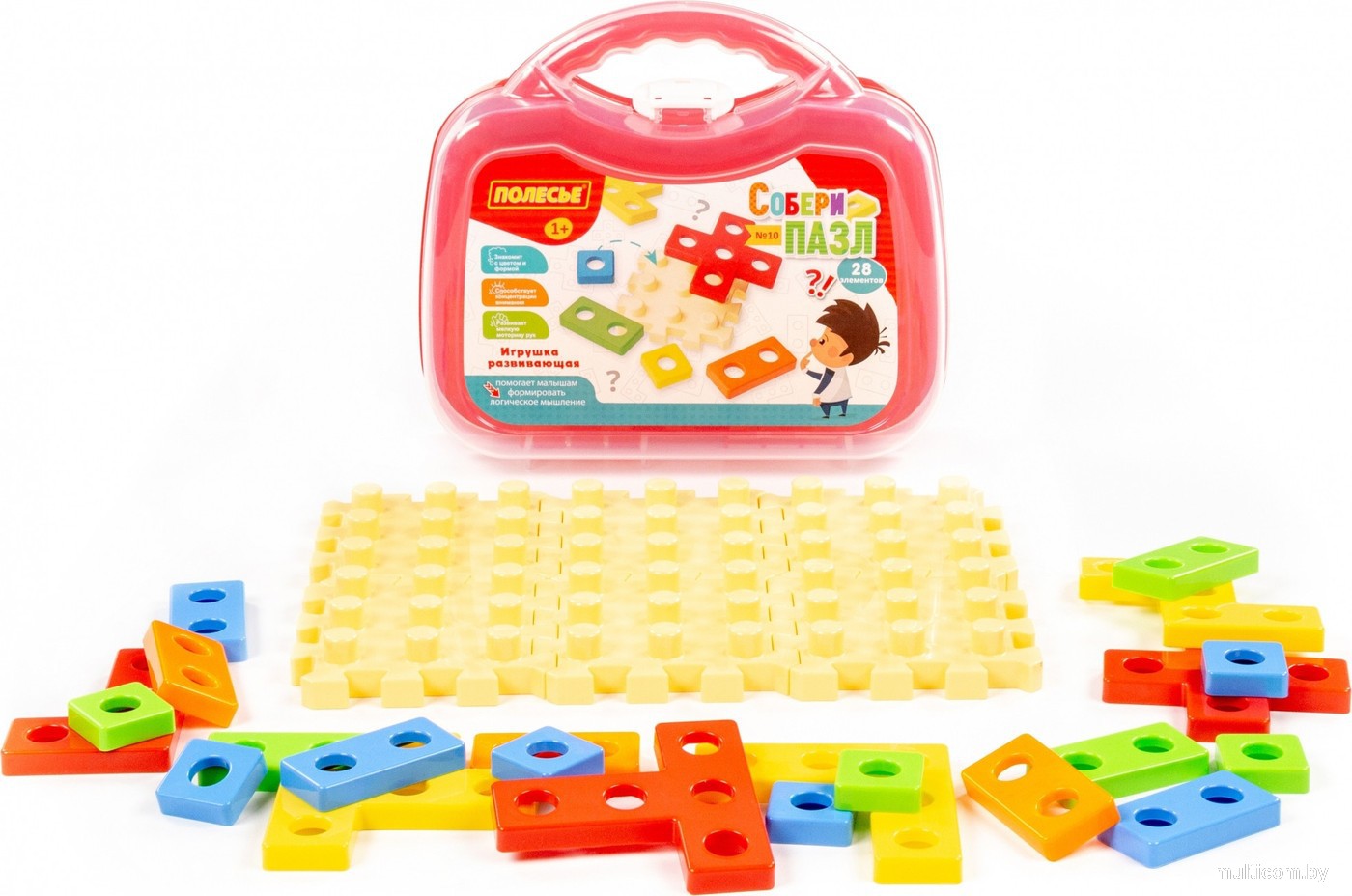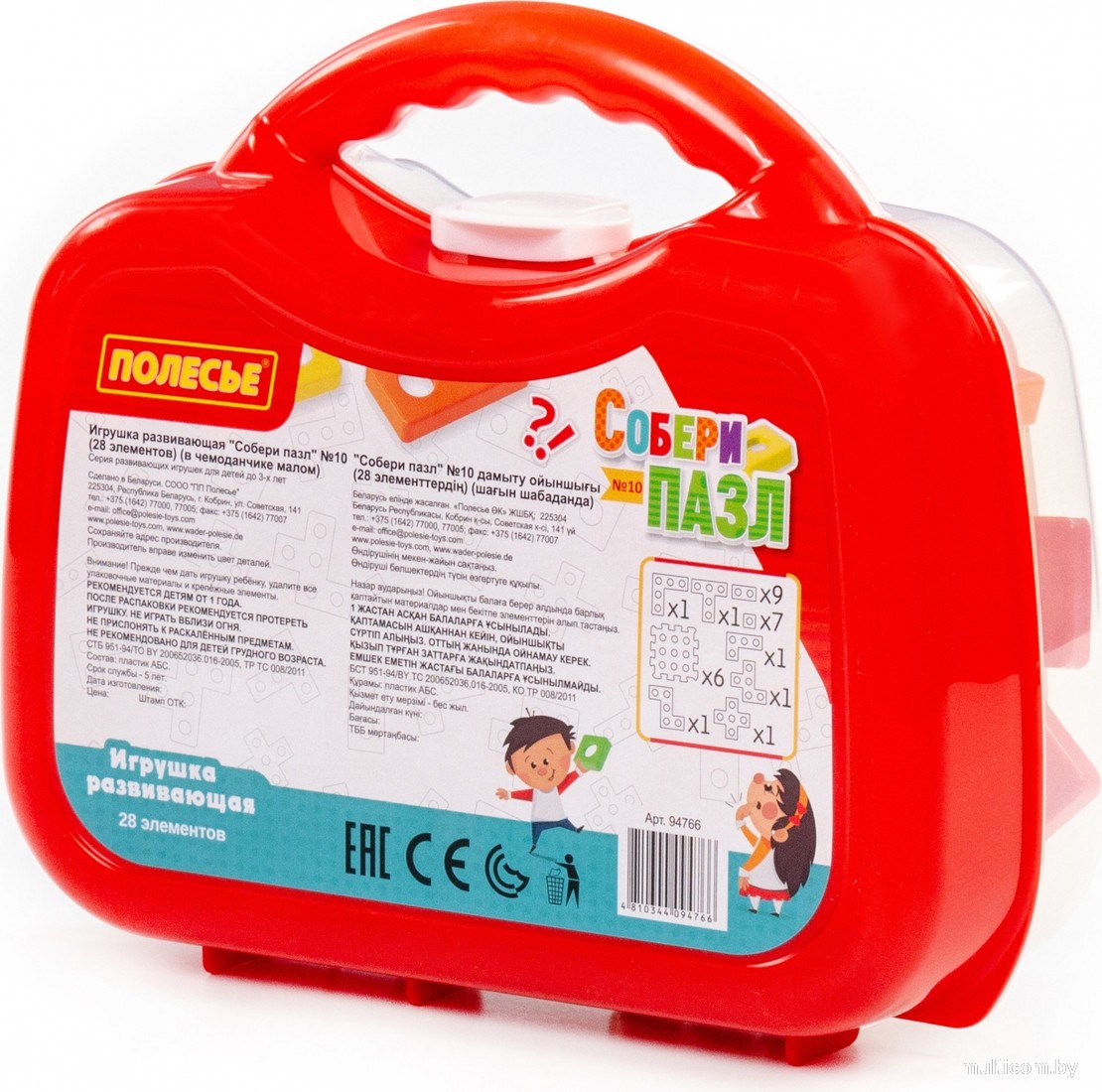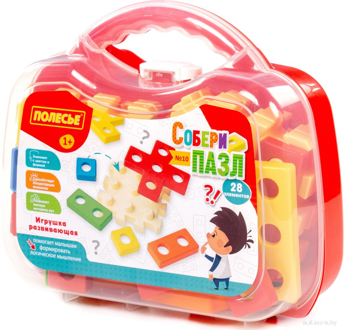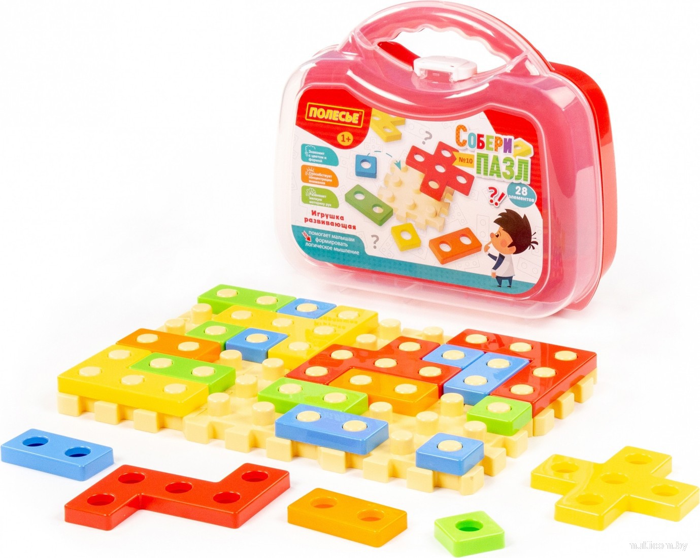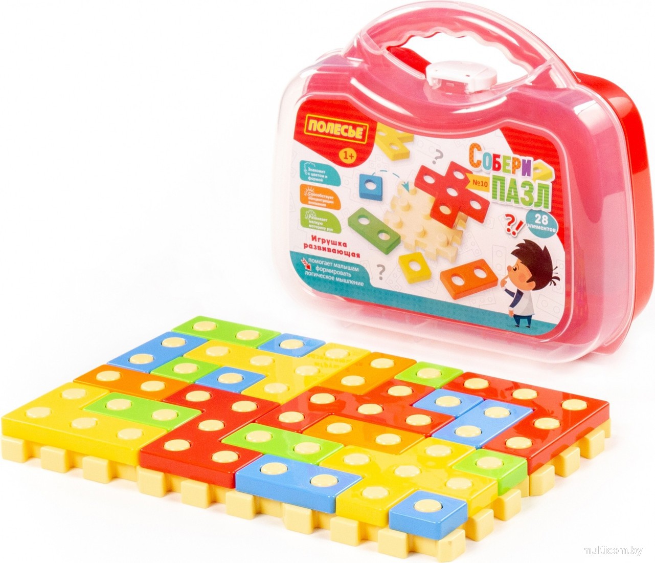 | Информация | Игрушка развивающая «Собери пазл» №10 представляет собой набор, состоящий из 6 квадратных платформ с разноцветными деталями различной формы. Необходимо разместить фигуры на платформах таким образом, чтобы они образовали заполненный прямоугольник. Платформы можно соединить между собой — в итоге получится пазл. Все элементы (28 шт.) помещены в компактный чемоданчик с ручкой, который можно брать с собой на прогулку. С набором можно играть самостоятельно, либо устраивать соревнования по сборке пазла в веселой компании. |