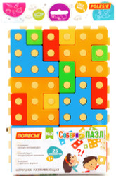 | Информация | Игрушка развивающая «Собери пазл» № 2 состоит из 25 элементов. Среди элементов — части пазла и фигуры разной геометрической формы. Фигуры необходимо расположить на частях пазла, чтобы игровое поле было полностью заполнено. Игрушка предназначена для детей от 1 года и продается в пакете. |
