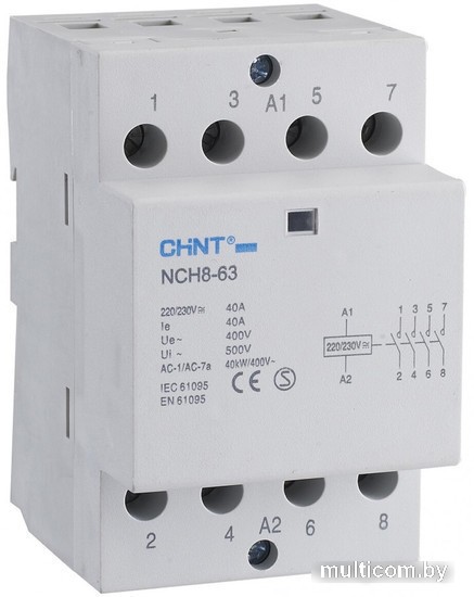 | Информация | Характеристики Тип СH8-20 соответствует CB, SEMKO, ESC; Тип NСH8-63 cоответствует СЕ Электрические параметры: переменный ток 20, 25, 40, 63 А; 230 В, 50/60 Гц Категория применения: АС-1, АС-7a, АС-7b Соответствует: ГОСТ Р 51731 Преимущества Компактный дизайн и модульное исполнение Применение материалов, обеспечивающих высокие изоляционные свойства, надежную работу и повышенную безопасность Эстетичный вид. Наличие наглядной и понятной схемы присоединения Экономия энергии |