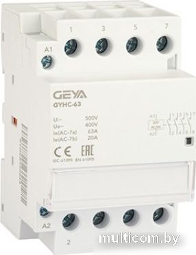 | Информация | GEYA - Контактор модульный GYHC-4P, 63A, 4NO, 24VDC, 3M - Артикул: GYHC6340024 |
