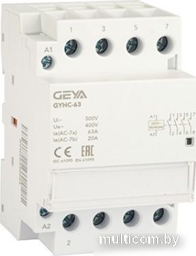 | Информация | GEYA - Контактор модульный GYHC-4P, 63A, 4NO, 230VAC, 3M - Артикул: GYHC6340230 |