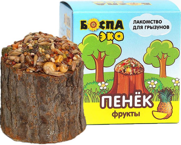 | Информация | БОСПА ЭКО Пенек с фруктами - лакомство для грызунов. Лакомство станет замечательным развлечением и разнообразит рацион питомца. Пенек состоит из зерновой смеси, вкусных добавок и дерева лиственных пород, безопасного для грызунов. Лакомство полностью съедобно. Сгрызание древесины гарантирует ежедневный уход за непрерывно растущими зубами грызуна. |