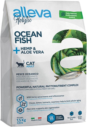 | Информация | ? Сухой корм для кошек Alleva Holistic Ocean Fish + Hemp & Aloe vera (с океанической рыбой и алое вера) 1.5 кг - это беззерновой полнорационный корм, который идеально сбалансирован для взрослых кошек. Он обеспечивает полный комплекс необходимых веществ для здоровья и развития вашего питомца. ? Преимущества этого корма включают: - 80% рыбы в составе, включая свежую и дегидратированную сельдь. Это гарантирует превосходный вкус и высокое качество белков животного происхождения. - Корм монопротеиновый, содержащий только один источник животного белка - океаническую сельдь. Добавленный рыбий жир (сельди) делает его отличным вариантом для кошек, склонных к аллергии на другие источники животного белка. - Корм без зерна, что делает его гипоаллергенным. Основной источник углеводов - батат, который лучше усваивается в пищеварительном тракте кошек, чем злаки и обычный картофель. ? Этот корм также содержит уникальный комплекс натуральных фитонутриентов и добавок: - Алое вера способствует регенерации кожных покровов и поддерживает иммунную систему. - Корень женьшеня усиливает естественную резистентность организма и повышает жизненный тонус. - Гвоздика, лимон, куркума и розмарин замедляют процессы клеточного старения. - Конопля посевная улучшает пищеварение и состояние ЖКТ. - Волокна сахарного тростника предотвращают образование комков шерсти в ЖКТ. - Омега-3 поддерживает здоровье кожи и шерсти. - Глюкозамин и хондроитин поддерживают здоровье суставов. - Таурин и L-карнитин поддерживают здоровье сердца и сосудов. ? Этот сухой корм Alleva Holistic Ocean Fish + Hemp & Aloe vera (с океанической рыбой и алое вера) доступен в упаковке весом 1.5 кг. |