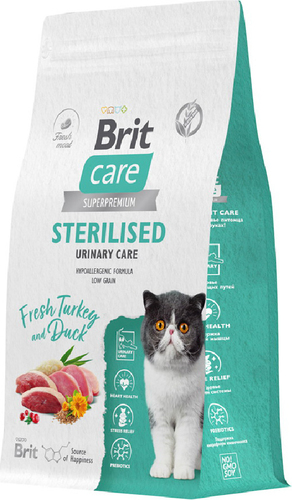 | Информация | Полнорационный сухой корм суперпремиум-класса с индейкой и уткой для стерилизованных кошек. Профилактика МКБ. DL-метионин поддерживает здоровье мочевыдели тельной системы. Стерилизованные кошки склонны к появлению мочекаменной болезни. Для предотвращения образования струвитных камней важно регулировать pH-баланс выделительной системы. |