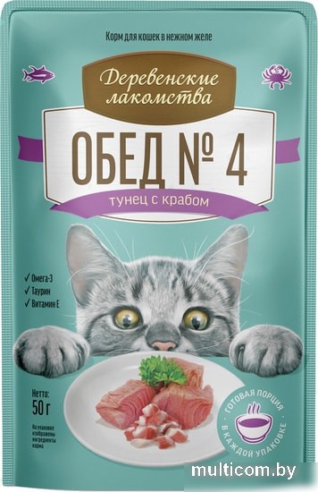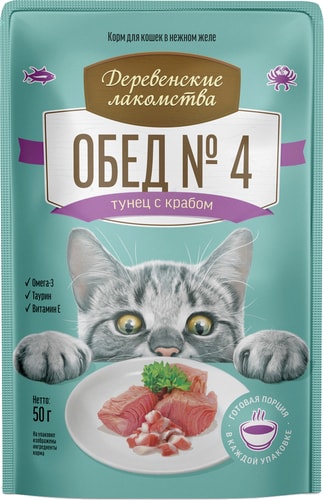 | Информация | Корм для кошек, в основу рецепта которого мы выбрали тёмное мясо тихоокеанского тунца с нежной текстурой и ярким ароматом морской рыбы. Блюдо идеально сочетает насыщенные вкусы кусочков крабового мяса и тунца. Подаётся в нежном желе. |