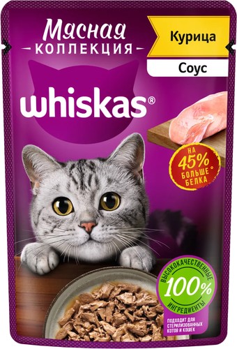 | Информация | Порадуйте вашу кошку сочными кусочками с курицей и доставьте ей максимум удовольствия. Подходит для стерилизованных котов и кошек. |