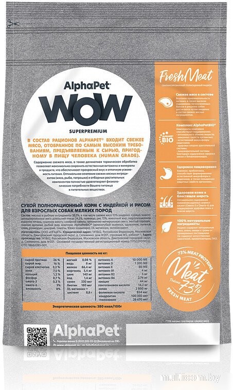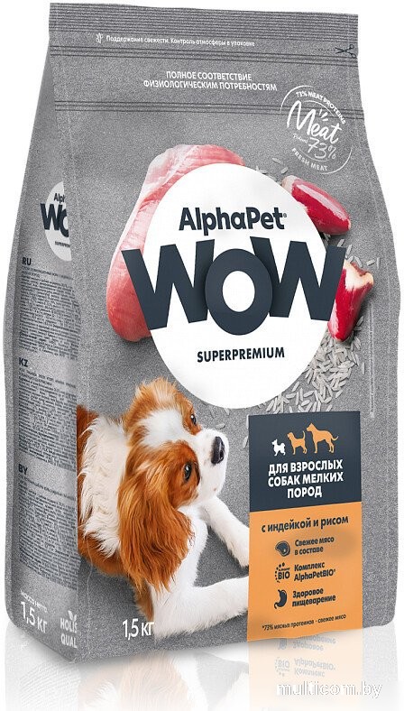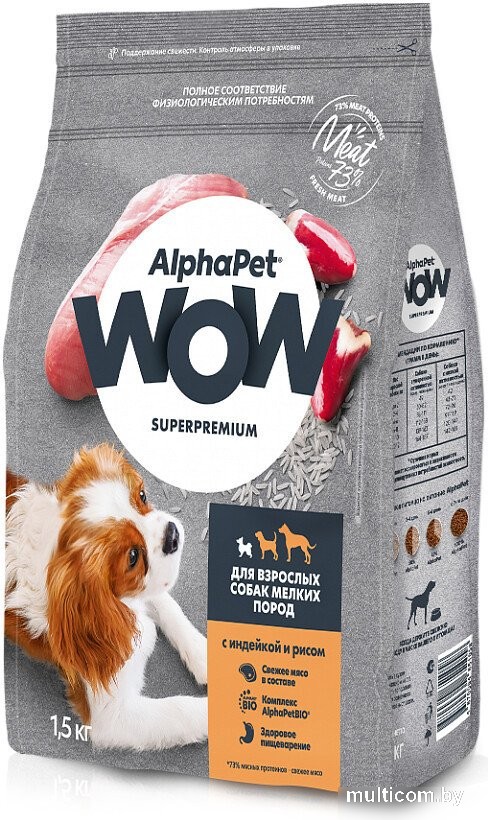 | Информация | AlphaPet WOW Superpremium / Сухой полнорационный корм с индейкой и рисом для взрослых собак мелких пород |