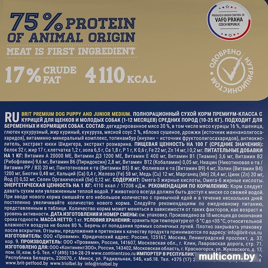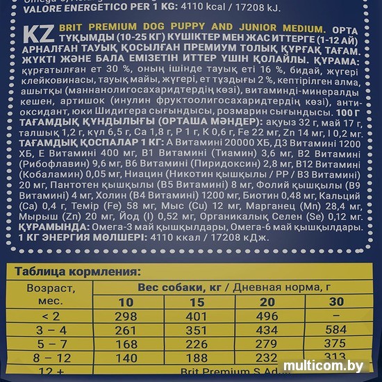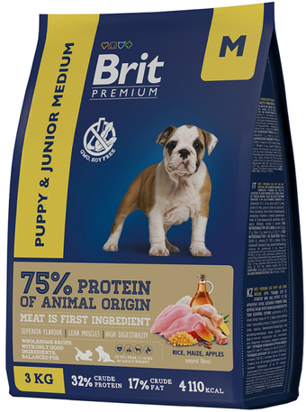 | Информация | Полнорационный сухой корм Brit Premium Junior Medium с курицей для молодых собак (1-12 месяцев) средних пород (10-25 кг). Подходит для беременных и кормящих собак. Brit Premium – корм премиум класса с высоким содержанием мяса! Состав корма идеально сбалансирован и отвечает всем потребностям в зависимости от возраста и породы. Содержание незаменимых аминокислот способствуют здоровому гармоничному развитию. Также в составе целый комплекс витаминов и минералов для крепкого иммунитета, и пребиотики для здорового пищеварения. Использование злаков с различным гликемическим индексом – создает чувство насыщения, снижает гликемический индекс злаковой составляющей. |
