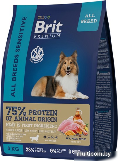 | Информация | Полнорационный сухой корм Brit Premium Sensitive с ягненком и индейкой для взрослых собак всех пород с чувствительным пищеварением. Brit Premium – корм премиум класса с высоким содержанием мяса 30%, в том числе мясо ягненка, индейки. Состав идеально сбалансирован и отвечает всем потребностям в зависимости от возраста и породы. Содержание незаменимых аминокислот способствуют здоровому гармоничному развитию. Баланс витаминов и минералов для крепкого иммунитета, а также пребиотики для здорового пищеварения. Использование злаков с различным гликемическим индексом – создает чувство насыщения, снижает гликемический индекс злаковой составляющей. Соблазнительный аромат и прекрасный вкус обеспечивается за счет свежих натуральных ингредиентов. Не содержит искусственных добавок, красителей, ароматизаторов. |