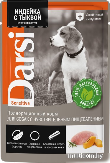 | Информация | Полнорационный влажный консервированный корм с индейкой и тыквой для собак всех пород с чувствительным пищеварением Гипоаллергенная формула Хорошее пищеварение Блестящая шерсть и здоровая кожа |