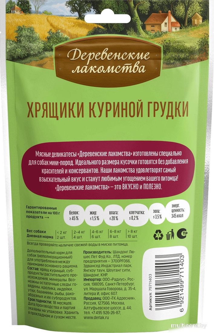 | Информация | - Уникальное лакомство для собак, которое порадует вашего питомца! Оно содержит множество витаминов и минералов, необходимых для поддержания здоровья суставов. Идеально подходит для собак мини-пород. - Состав: хрящ куриный, растительные субпродукты, минералы. - Гарантированные показатели на 100 г продукта: белок 45 г, жир 1.5 г, влага 20 г, клетчатка 0.2 г, зола 3.5 г. - Позаботьтесь о здоровье вашего любимца с этим полезным угощением! |