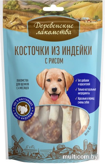 | Информация | Уникальное, полезное лакомство. Сушёное мясо индейки с добавлением риса на мягкой жевательной косточке станет обязательным пунктом в списке ваших покупок. Лакомство для щенков. |